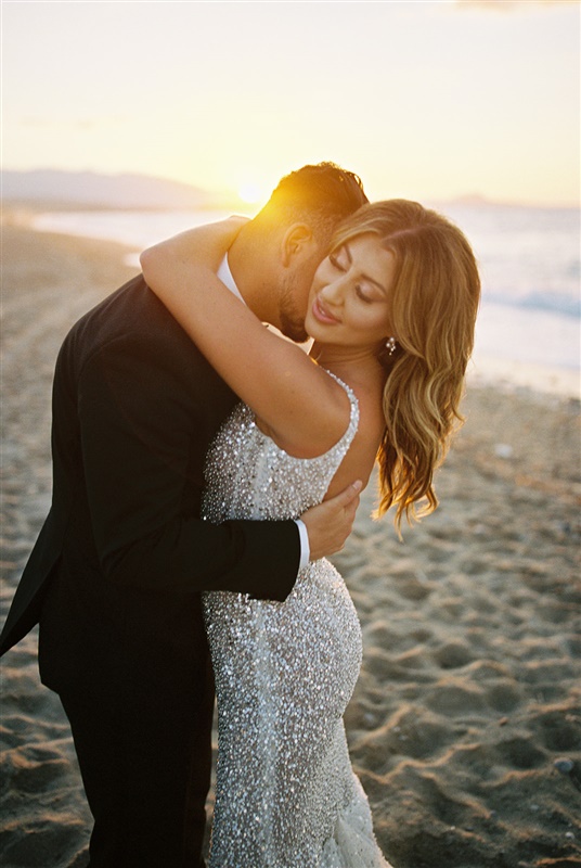 Before the celebration continued into the night, Emily and Pete took a quiet moment for a sunset photo session on the beach. As the sun dipped below the horizon, it painted the sky in warm hues of gold and pink. They walked hand-in-hand along the shoreline, their love glowing as brightly as the setting sun. The serene backdrop of gentle waves and soft, golden sand perfectly captured the intimacy and romance of the day. These ethereal images, full of warmth and natural beauty, became the perfect prelude to the lively dance floor. They forever preserved the calm before the evening’s festivities.