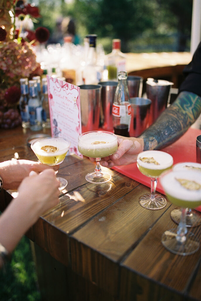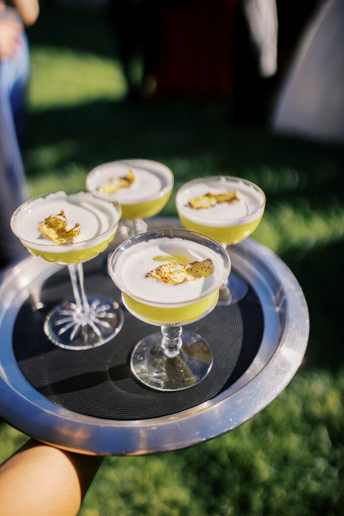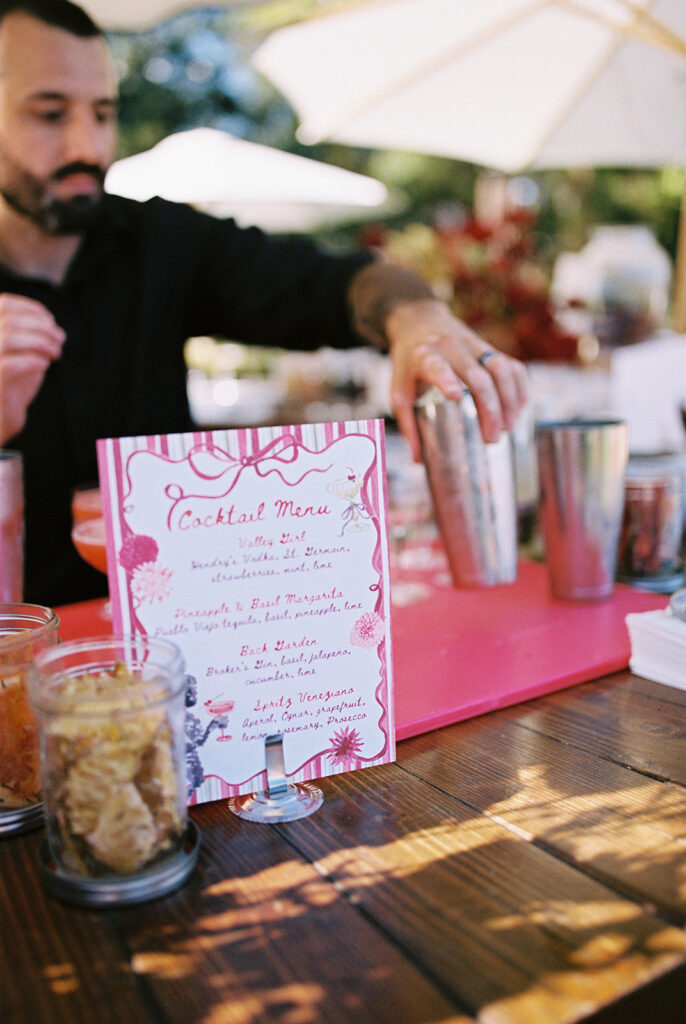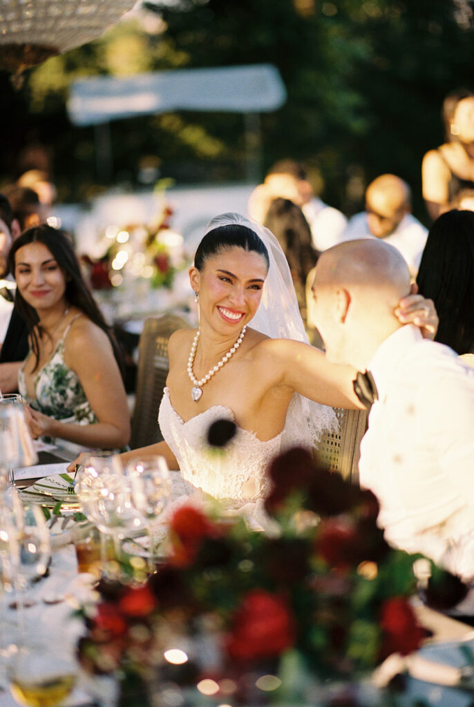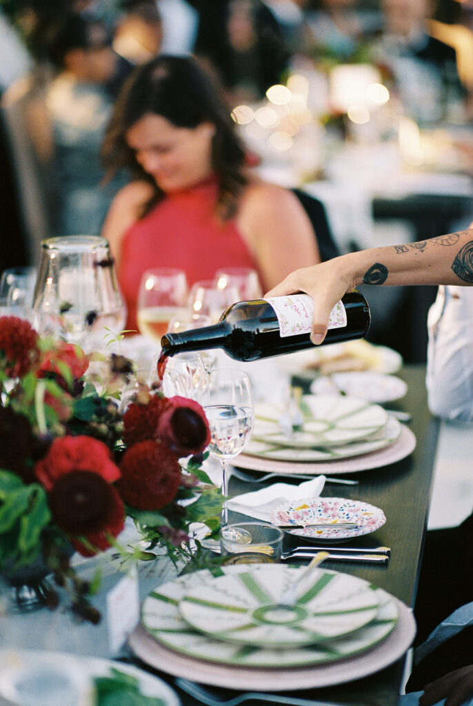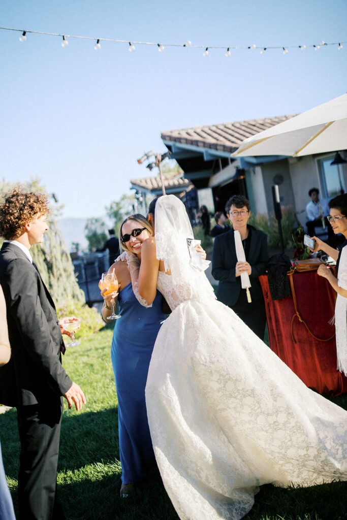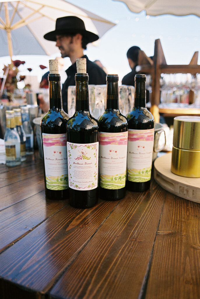 After the ceremony, the celebration moved to the back of the property, where the cocktail hour and reception unfolded with stunning vineyard views as the backdrop. Guests sipped wine from the family vineyard while mingling under the soft afternoon light, the rolling vines and golden sunset setting the perfect scene for an evening full of laughter, toasts, and heartfelt moments.