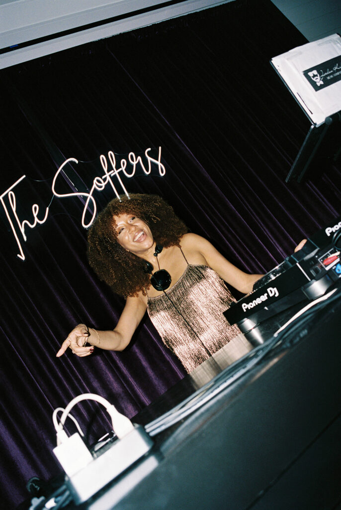 As the night unfolded, the celebration gradually shifted, easing from candlelit romance into something decidedly more electric. Soon after, the after party began in a pink-lit cocktail bar tucked just beyond the reception space — disco balls scattering flecks of light across the walls while glasses clinked and the music pulsed low and steady in the background. Then, as if on cue, the bride reappeared in a white pant suit, effortlessly chic and entirely ready to dance, and with that, the entire energy of the evening transformed in the very best way.